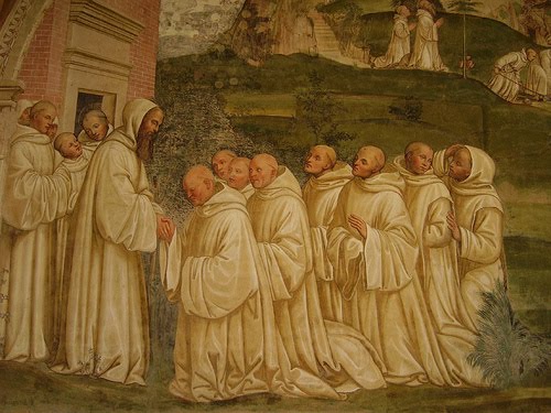 In verità, l’espansione dell’ordine benedettino fu nei primi secoli della Chiesa come un annuncio della primavera. In un’Italia in piena anarchia, verso l’anno 530, san Benedetto s’installa a Montecassino, gli eserciti di Bisanzio fanno razzia a nord della penisola, la Scuola di filosofia di Atene chiude i battenti, Augustolo – l’ultimo imperatore romano – muore assassinato. In quest’epoca continuamente turbata dalle invasioni barbariche, i primi benedettini si riuniscono in comunità e sotto la Regola del loro Padre svolgono l’apprendistato della vita eterna.